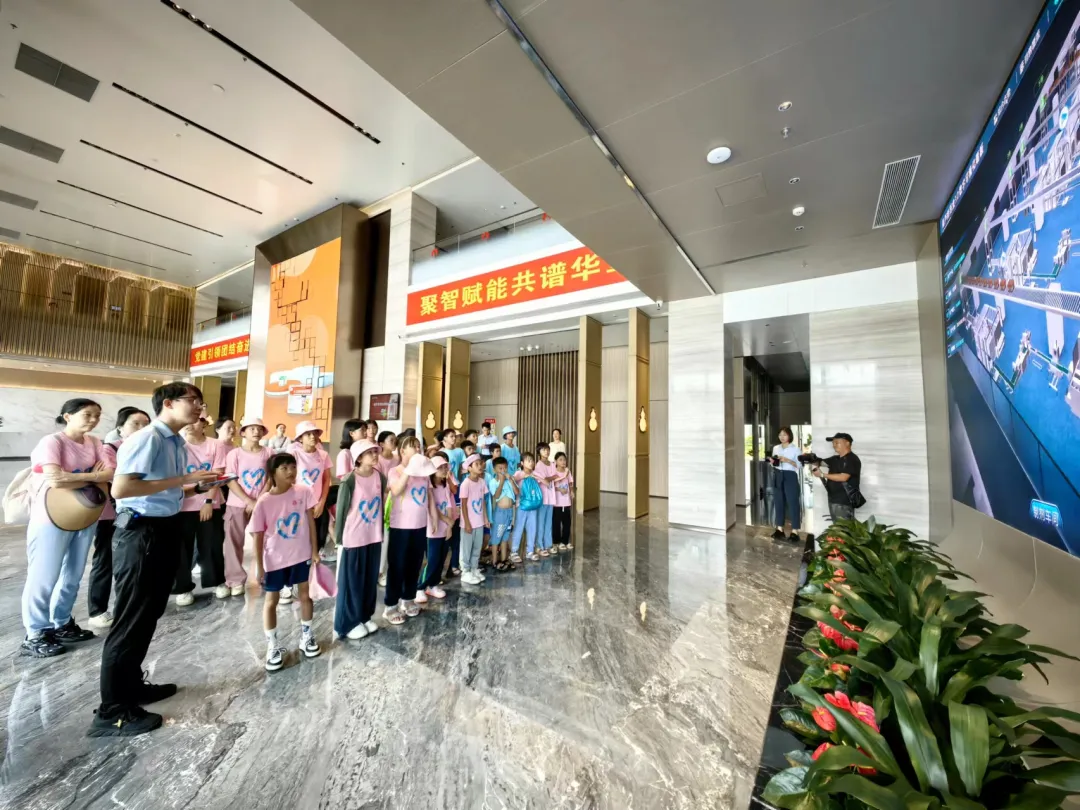 活动一开始,孩子们便迫不及待地踏入了AG贵宾会药业集团的大厅。3D数字化看板上的生动画面,让孩子们仿佛置身于一个充满科技与创新的现代制药工厂。他们瞪大眼睛,好奇地观察着每一条生产线、每一台设备,听着讲解员介绍AG贵宾会药业的儿药发展历程。
